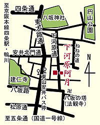 ● 八坂神社から八坂の塔に向かって、下河原通を南に5分程歩いた西側。