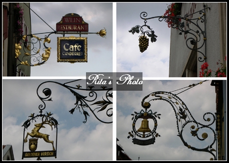 [若朝市場廣場南方繼續往下走,沿著鐵匠巷Schmiedgasse,便會看到名為小普勒恩「Ploenlein」的叉路,連接兩座城門,這是中古世紀典型的的路形,而沿路商店的招牌,都保留中古時代的形式,配合營業項目設計出別出心裁的圖案,很有看頭]
