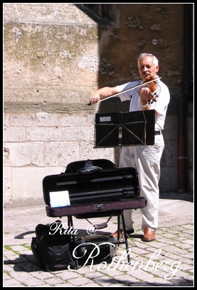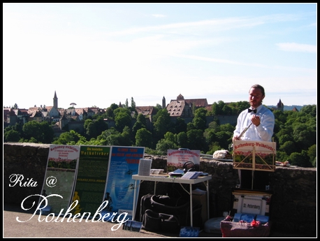 [穿著中古世紀的表演者,述說著我們剛錯過了一場精彩的演出,但我並不懊惱,因為羅騰堡的精彩,等著我去發掘呢!]