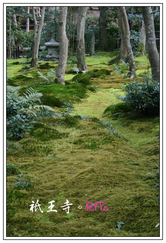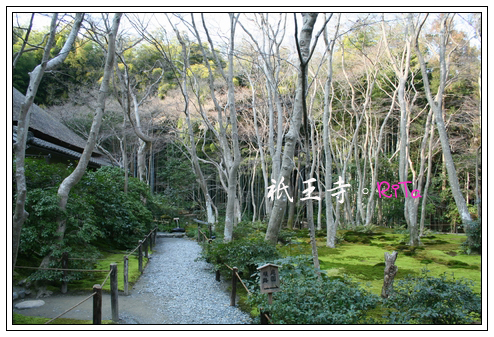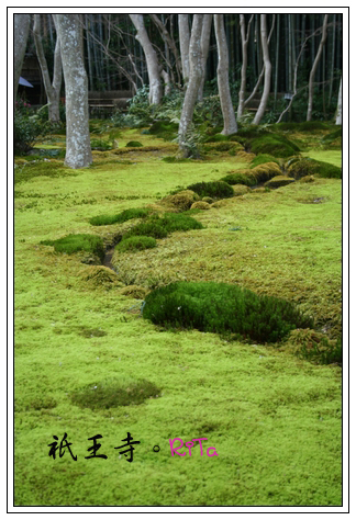 以竹籬笆圍成一個小小清幽之地的祇王寺,寺內楓樹枯木成林,但冬天當然不見半片楓葉飄零,然而如此更能見到像是綠色地毯般的苔原,苔原色澤因為品系的差異,而有著多層次的變化,顯得華麗而厚實,苔原的鮮艷亮綠與楓木的淒清之色形成鮮明的對比。