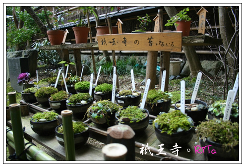 一進入祇王寺,售票亭的歐巴桑笑咪咪的歡迎我們,買了票(好像是300日圓吧!)準備要進入時,一個可愛的歐幾桑看到我和朋友的單眼相機,熱情地和我們打招呼,他尤其對我朋友的Nikon相機感興趣,因為和他所使用的機型是一樣的,雞同鴨講了一陣子,大伙又開開心心地講著自己熟悉的語言,「差不多」了解彼此的熱情和心意之後,才有點不捨地讓我們入內參觀,很喜歡如此開心地soga、hi-hi、ㄚno、什麼什麼ㄋㄟ的沒完沒了,日本人總是那麼溫文有禮又可愛熱情,而我們台灣人當然也是。